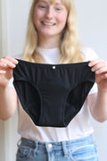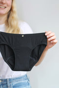 Eine neue Generation von Menstruationshöschen mit einzigartiger Technologie! Der schwarze Periodenslip für Mädchen kombiniert natürliches Modal, weiche Merino-Wolle und die innovative Saugschicht SAYUpro in starker Saugfähigkeit. Der verlängerte Einsatz auf der Vorderseite, die verbesserte Passform und die Flachnähte sorgen für hohen Tragekomfort. Auch in größeren Größen erhältlich.